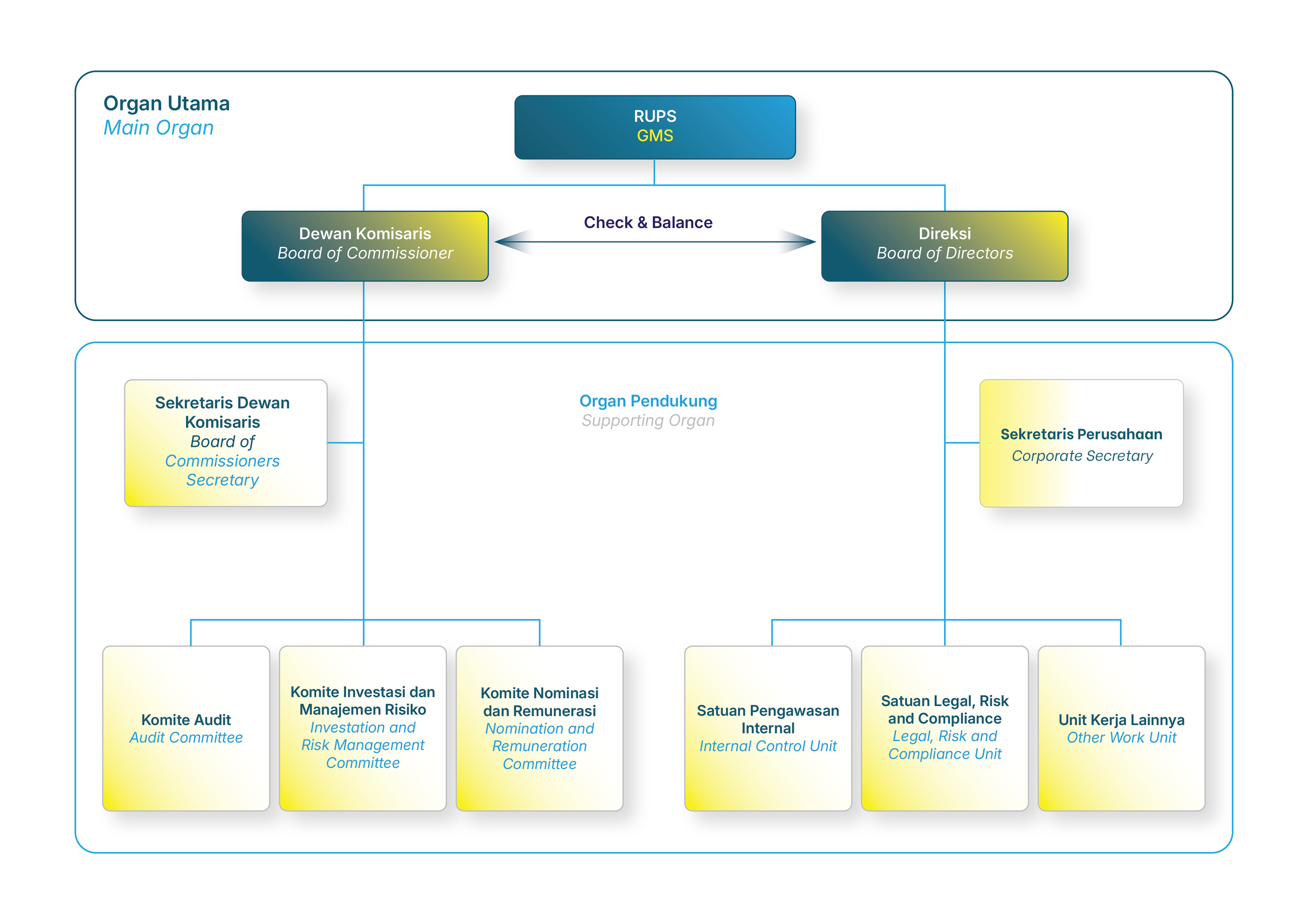 We consistently applies Good Corporate Governance/GCG principles that evolve in accordance with business dynamics, social conditions, and technological advancements to ensure the Company’s sustainability and stakeholders' interests. Based on four main pillars—ethical behavior, accountability, transparency, and sustainability—we ensure governance that complies with regulations while upholding values of honesty, respect, and morality in all our activities.